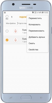 - В приложении «Мои файлы» находим нужный файл или папку.